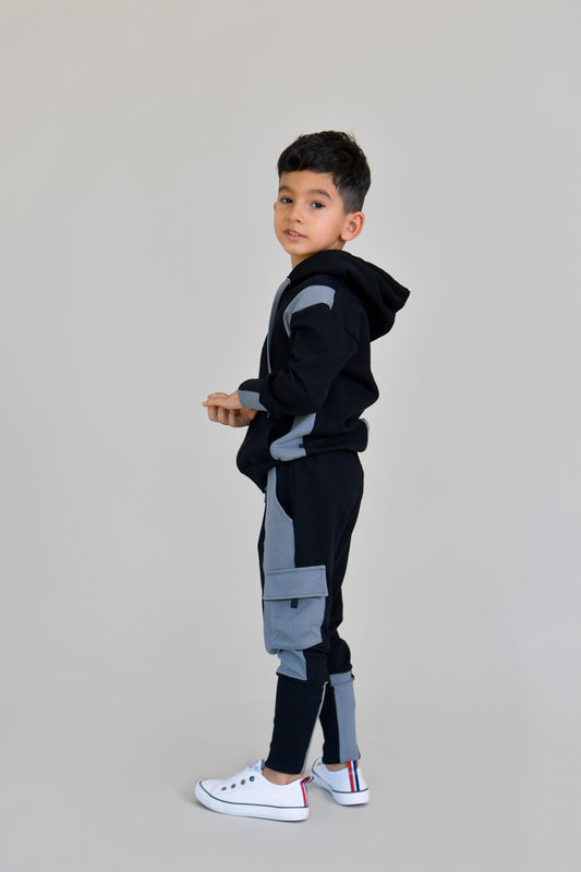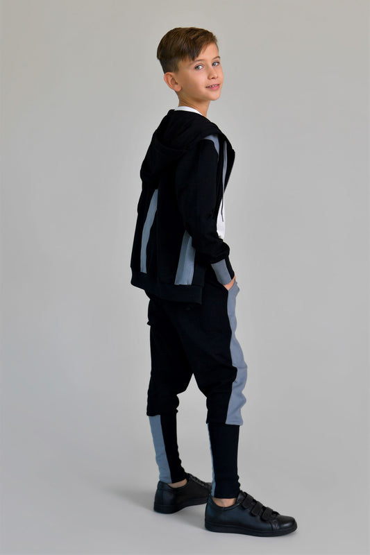 TRENING CU MANSETE LATE NEGRU CU GRI (size 2 - 6)