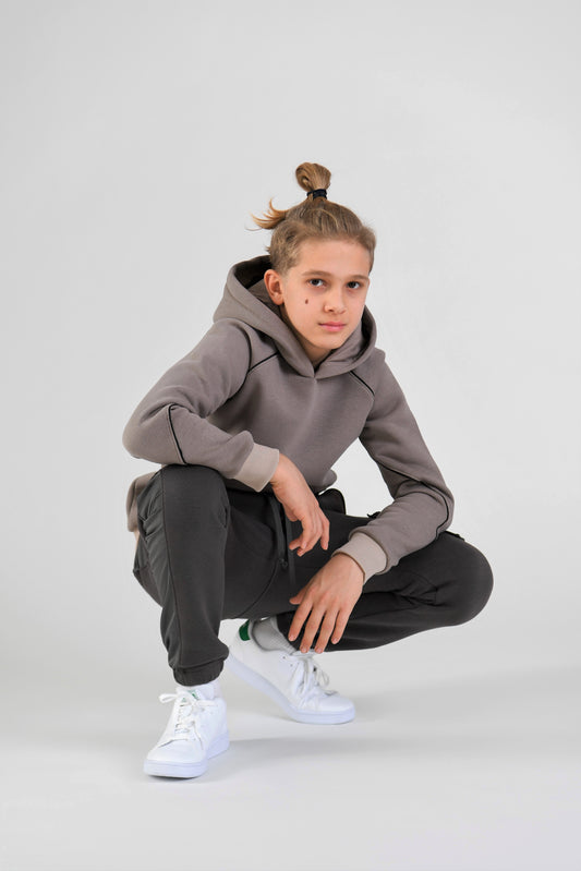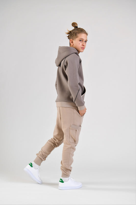 PANTALONI FLAUSATI CU BANDA LATERALA, TAUPE
