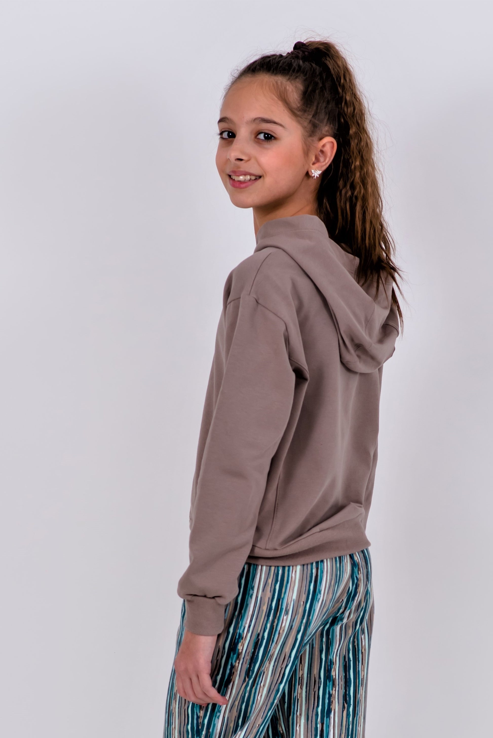 - Hanorac cu gluga si doua buzunare laterale, cu banda elastica la terminatie si mansete