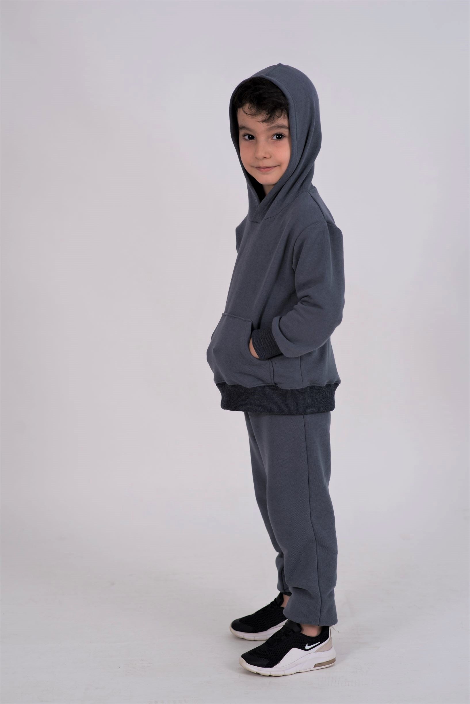 - Trening confortabil alcatuit din hanorac cu gluga si buzunar tip marsupiu, cu banda elastica in talie si la mansete, si pantalon model conic, cu patent la terminatie, banda elastica in talie